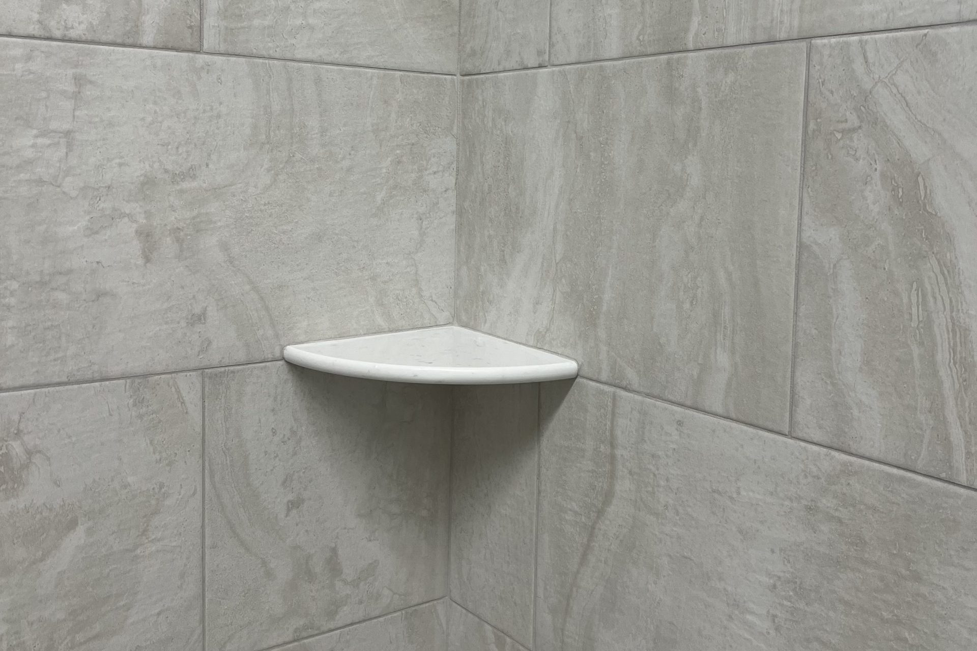 * Storage Shelf: Corner shelf included – Travertine (Polished) 9″ Radius