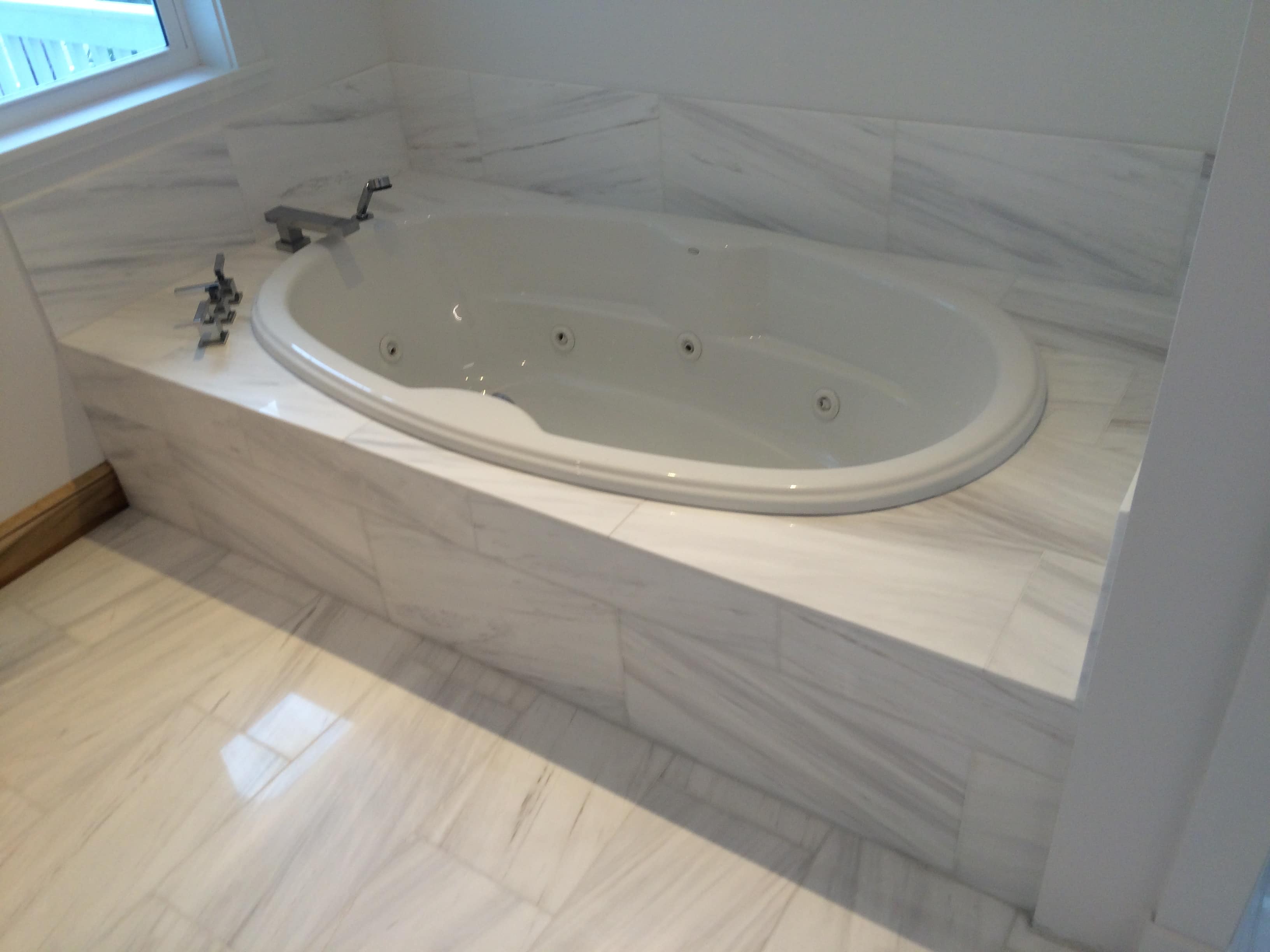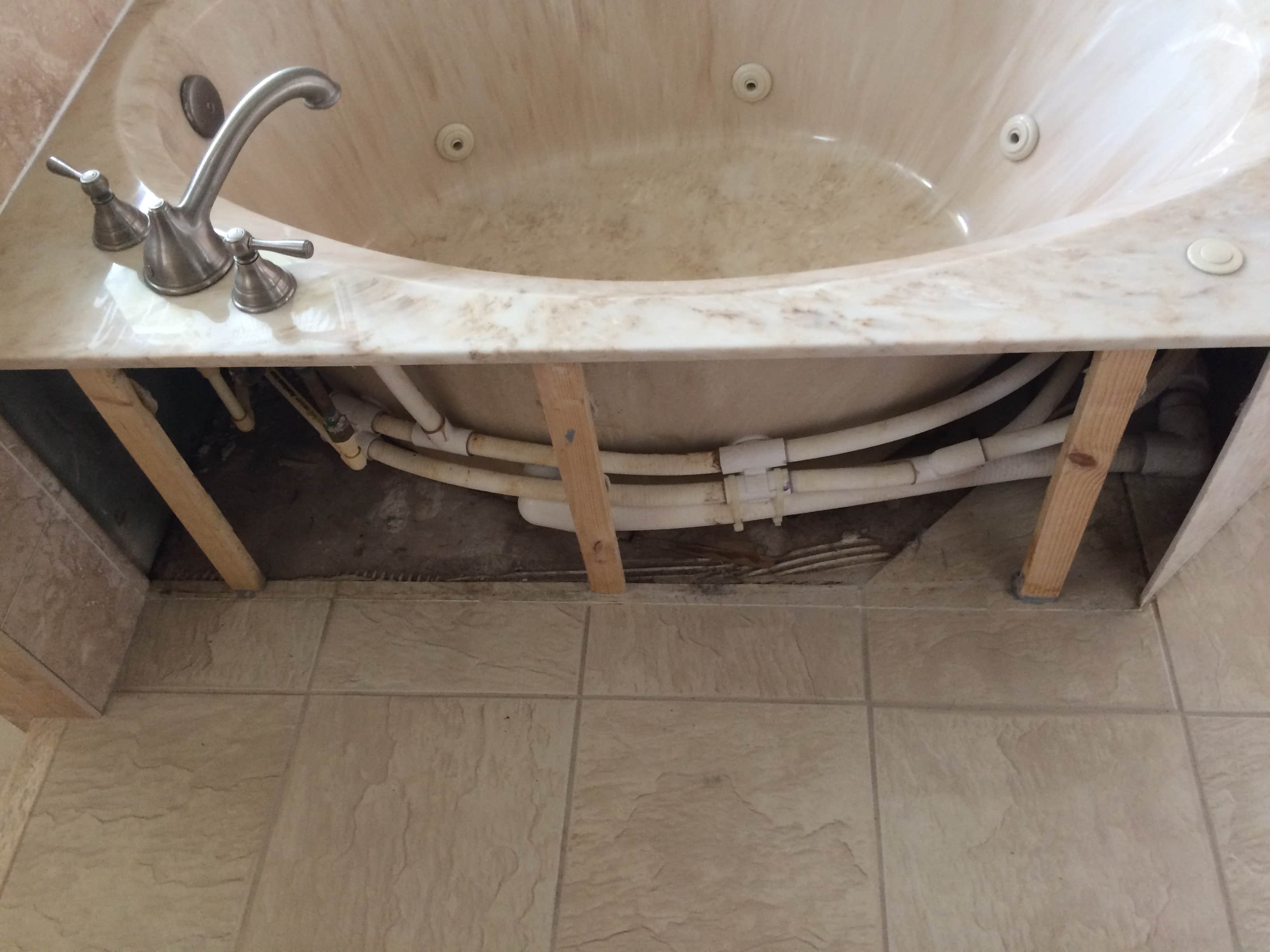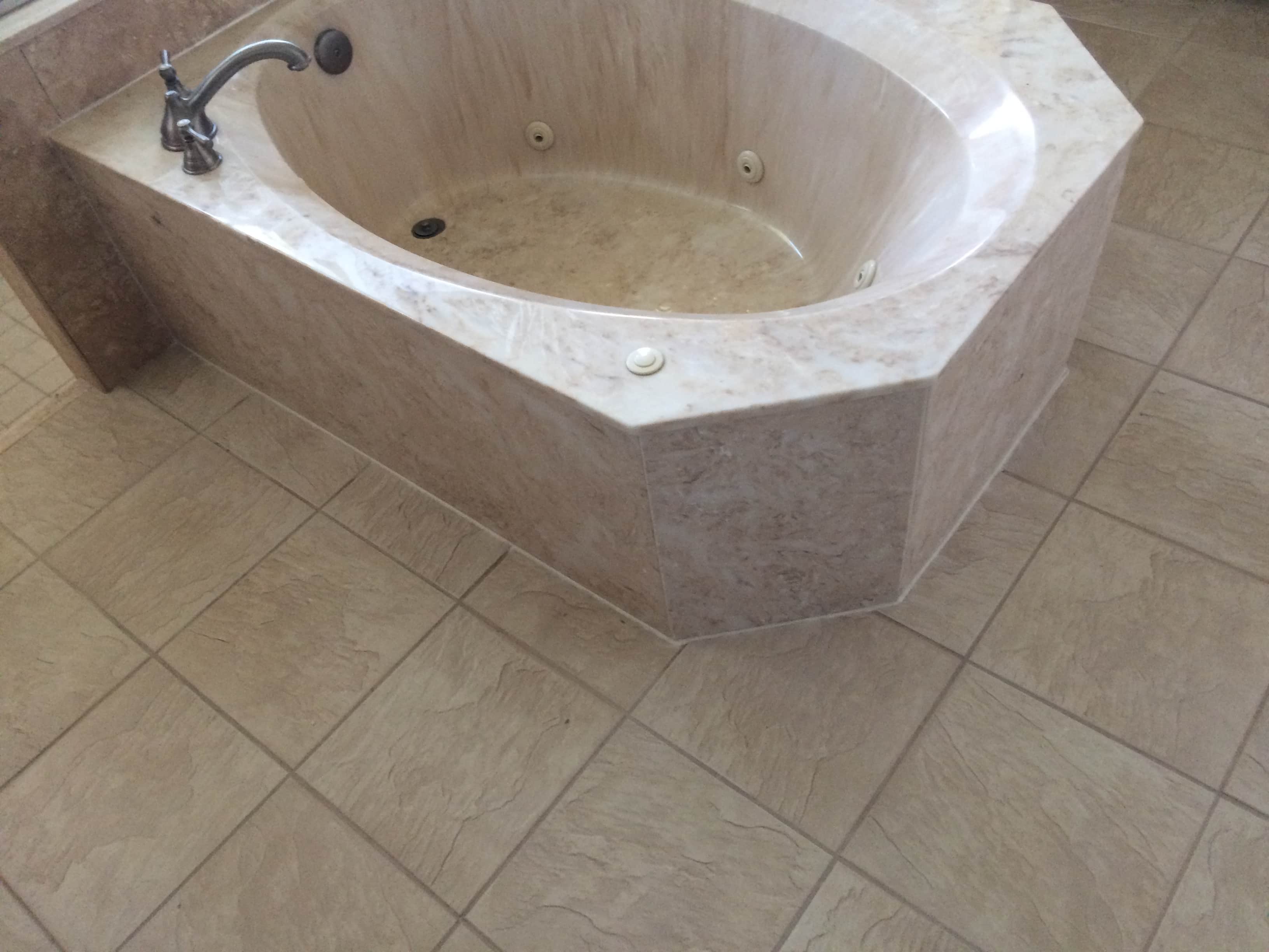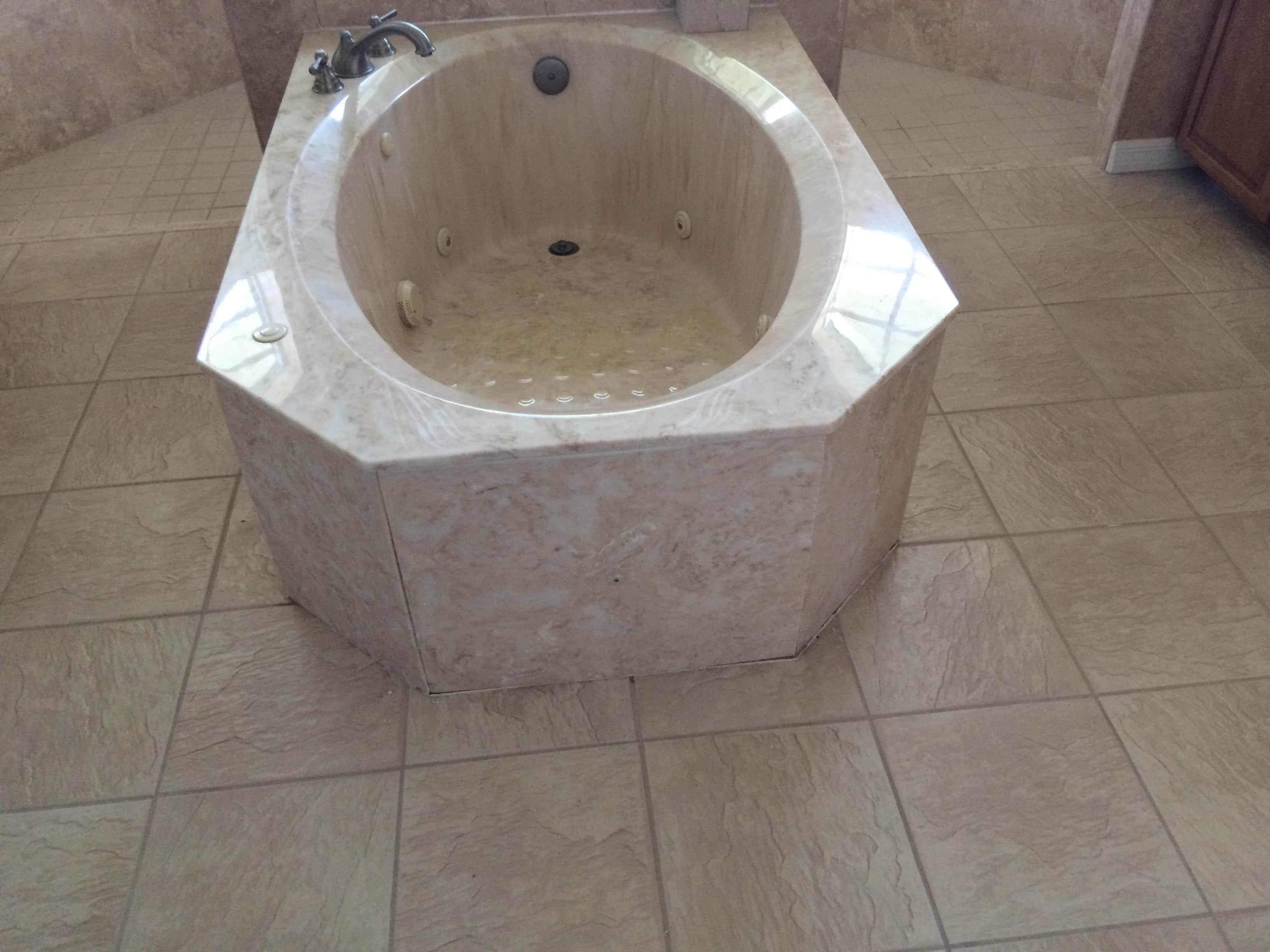 This tub had the siding removed because it had become warped. We set the slabs on a couple tiles and set a few more, to encourage it to straighten out. We did this and more for Cameron and Margaret in Rotonda.